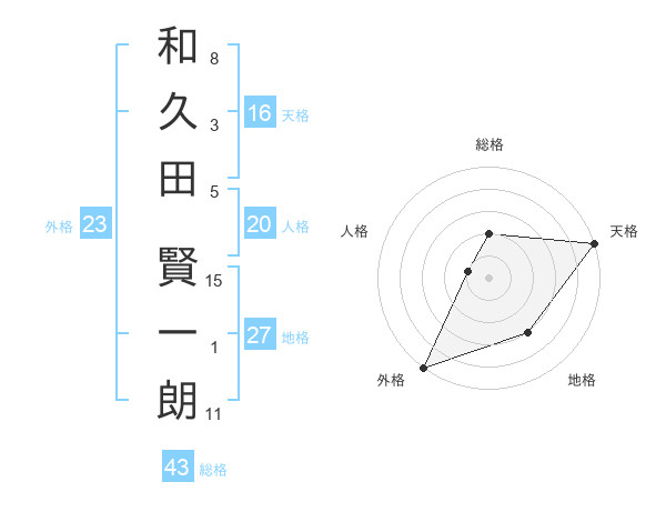 和久田 賢一朗さんを姓名の画数から五運を鑑定