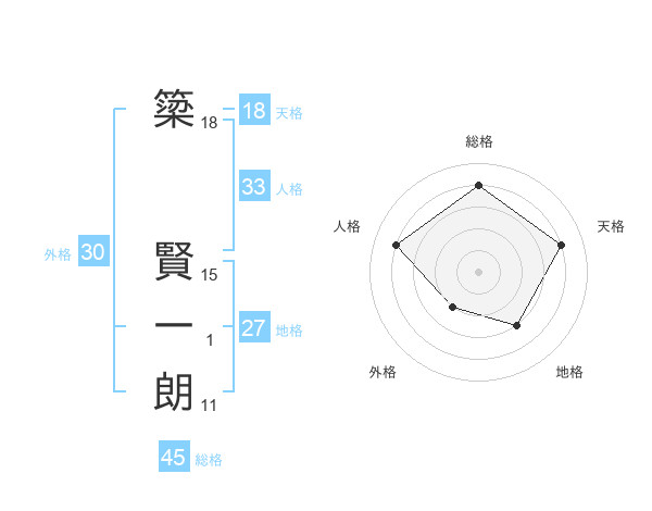 簗 賢一朗さんを姓名の画数から五運を鑑定