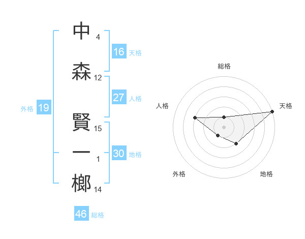 中森 賢一榔さんを姓名の画数から五運を鑑定