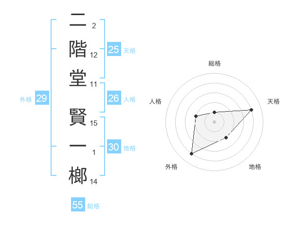 二階堂 賢一榔さんを姓名の画数から五運を鑑定