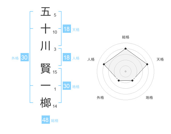 五十川 賢一榔さんを姓名の画数から五運を鑑定