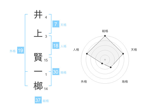 井上 賢一榔さんを姓名の画数から五運を鑑定