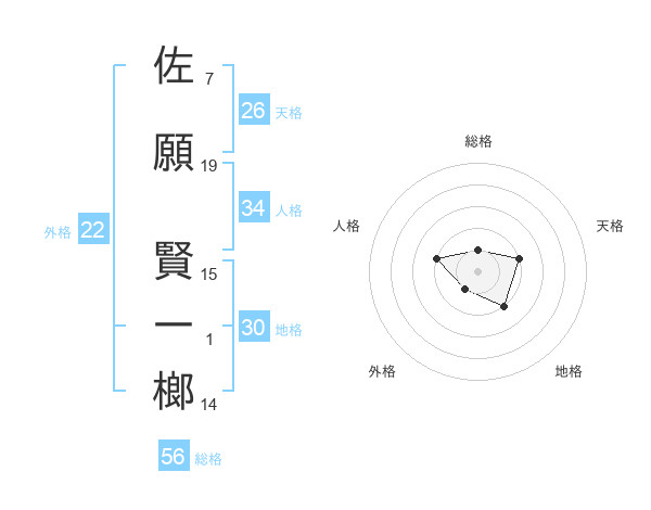 佐願 賢一榔さんの外格は22画の1点!