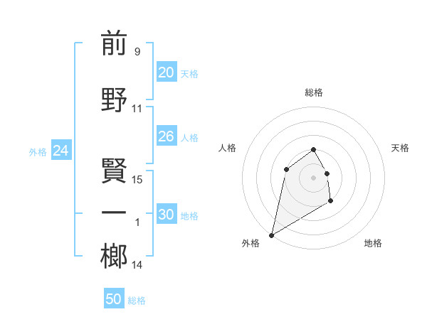 前野 賢一榔さんの総格は50画の2点!