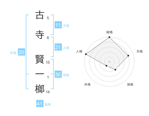 古寺 賢一榔さんを姓名の画数から五運を鑑定