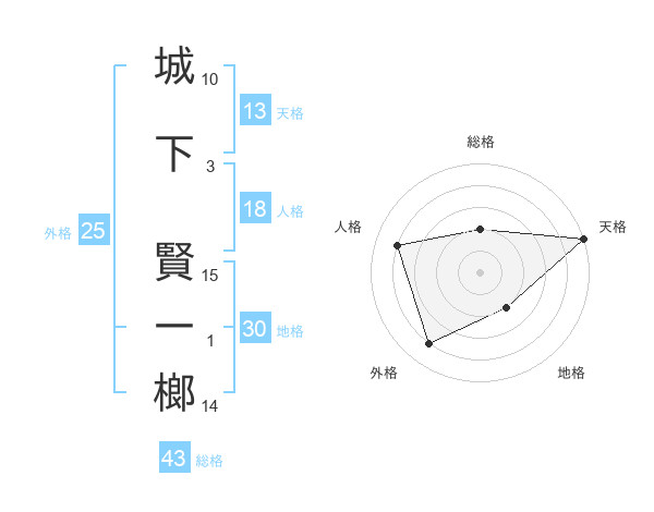 城下 賢一榔さんの総格は43画の2点!