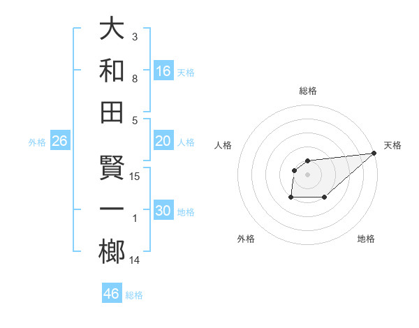 大和田 賢一榔さんを姓名の画数から五運を鑑定