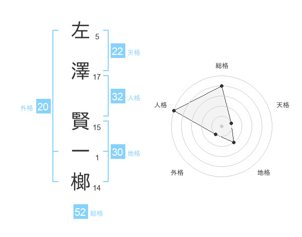 左澤 賢一榔さんを姓名の画数から五運を鑑定