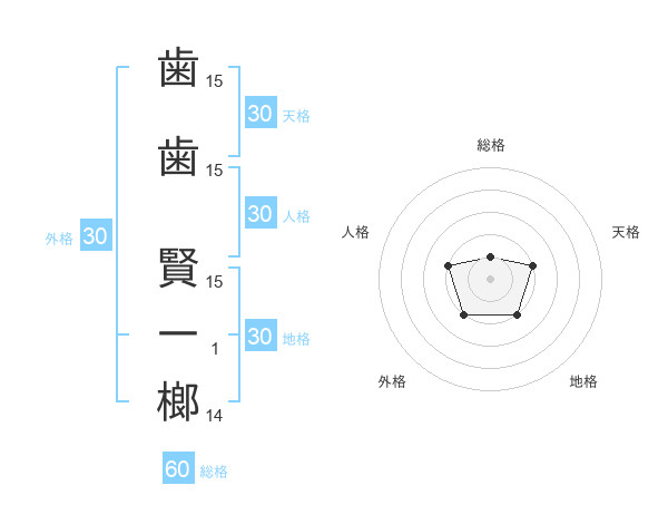 歯歯 賢一榔さんの外格は30画の2点!