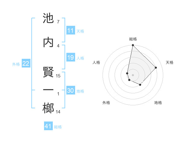 池内 賢一榔さんの総格は41画の5点!