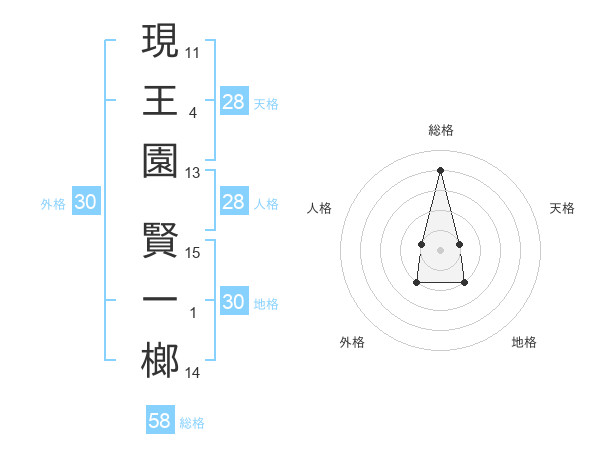 現王園 賢一榔さんの総格は58画の4点!