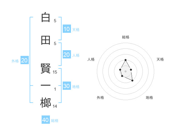 白田 賢一榔さんを姓名の画数から五運を鑑定