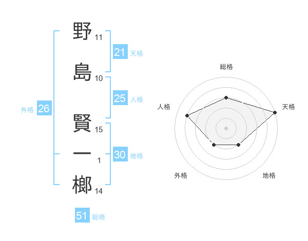 野島 賢一榔さんを姓名の画数から五運を鑑定
