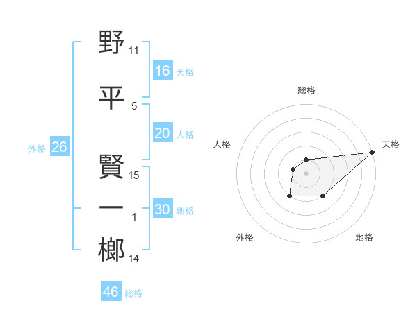 野平 賢一榔さんの総格は46画の1点!