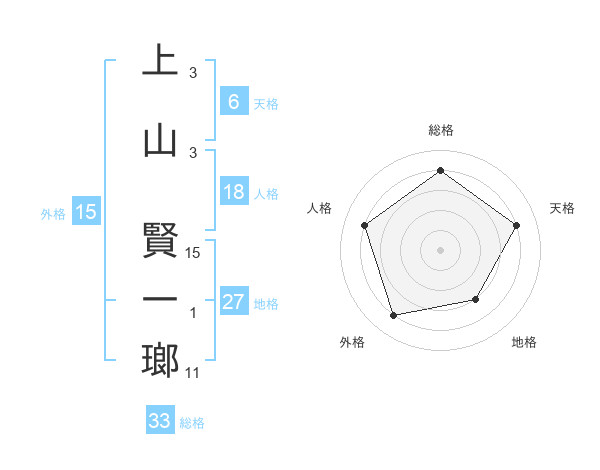 上山 賢一瑯さんを姓名の画数から五運を鑑定