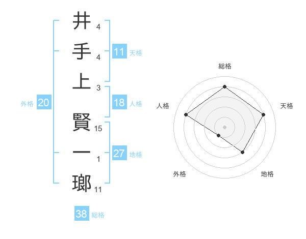 井手上 賢一瑯さんを姓名の画数から五運を鑑定