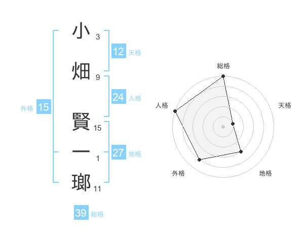 小畑 賢一瑯さんを姓名の画数から五運を鑑定