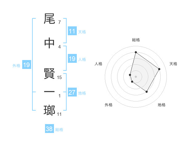 尾中 賢一瑯さんの総格は38画の4点!