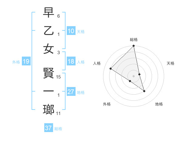 早乙女 賢一瑯さんの総格は37画の5点!