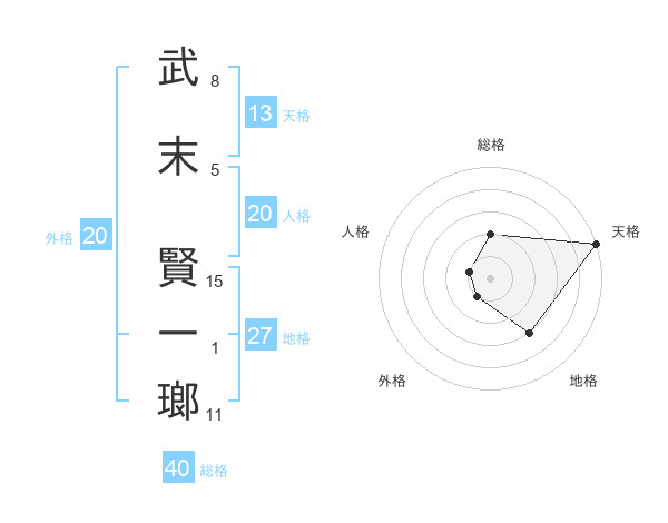 武末 賢一瑯さんを姓名の画数から五運を鑑定
