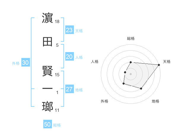 濵田 賢一瑯さんを姓名の画数から五運を鑑定
