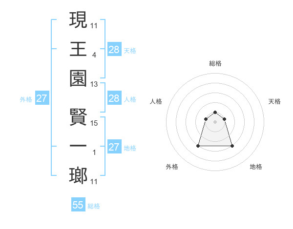 現王園 賢一瑯さんを姓名の画数から五運を鑑定