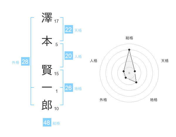 澤本 賢一郎さんの総格は48画の4点!