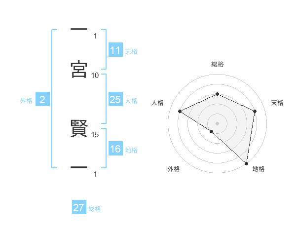 一宮 賢一さんを姓名の画数から五運を鑑定