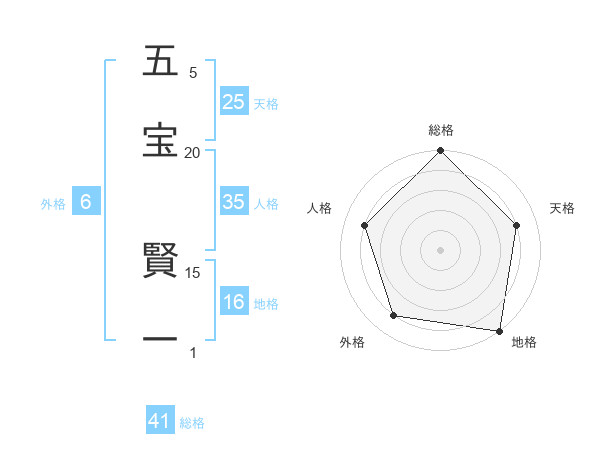 五宝 賢一さんを姓名の画数から五運を鑑定