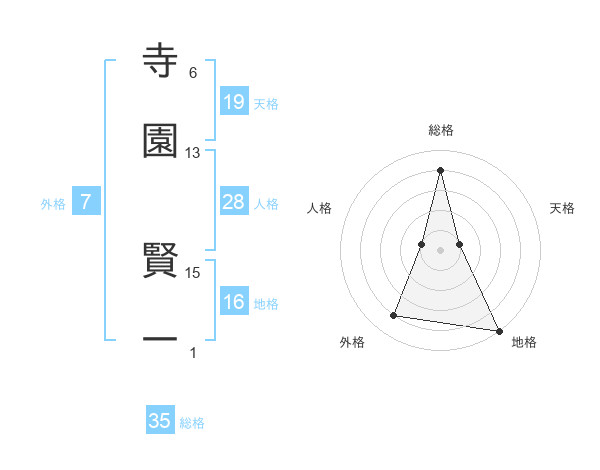 寺園 賢一さんの天格は19画の1点!