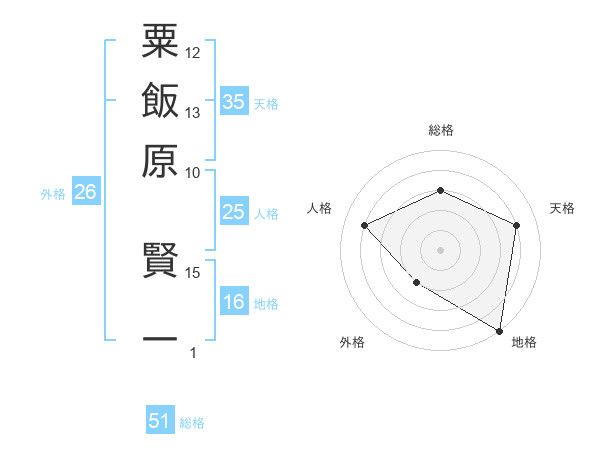 粟飯原 賢一さんの総格は51画の3点!