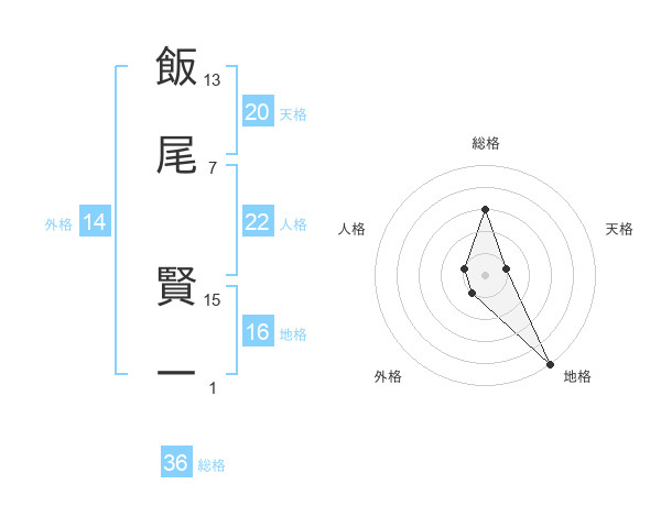 飯尾 賢一さんの天格は20画の1点!