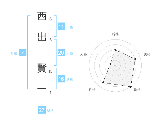西出 賢一さんの総格は27画の3点!