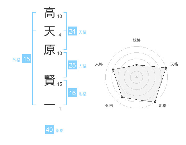高天原 賢一さんの総格は40画の2点!
