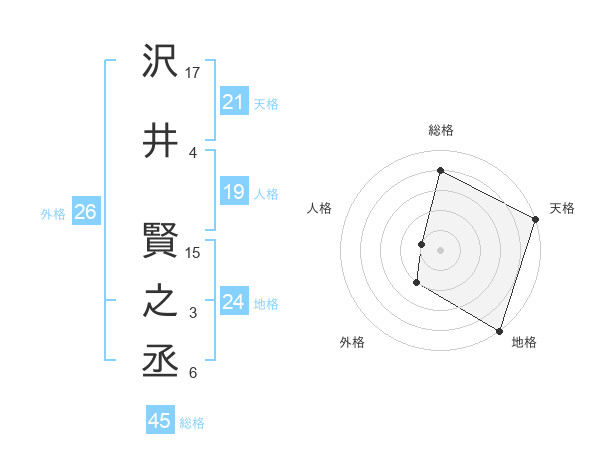 沢井 賢之丞さんの地格は24画の5点!