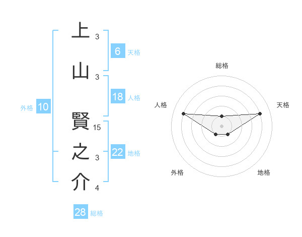 上山 賢之介さんを姓名の画数から五運を鑑定