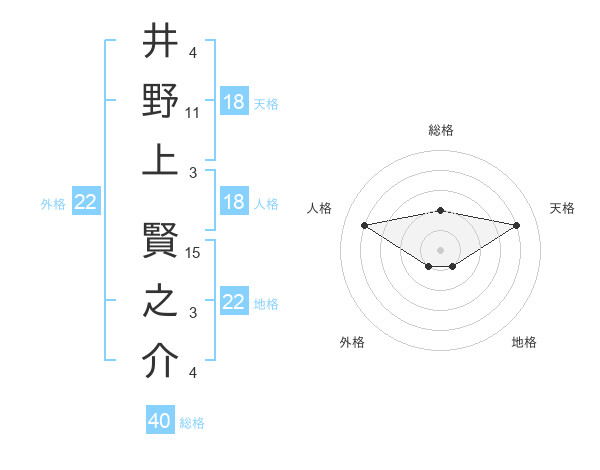 井野上 賢之介さんを姓名の画数から五運を鑑定