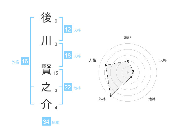 後川 賢之介さんを姓名の画数から五運を鑑定
