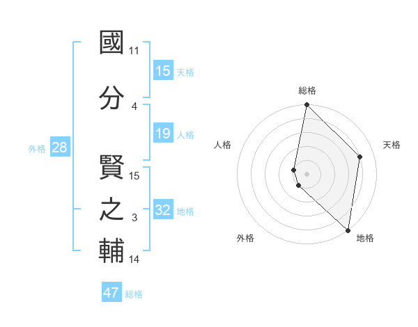 國分 賢之輔さんの総格は47画の5点!