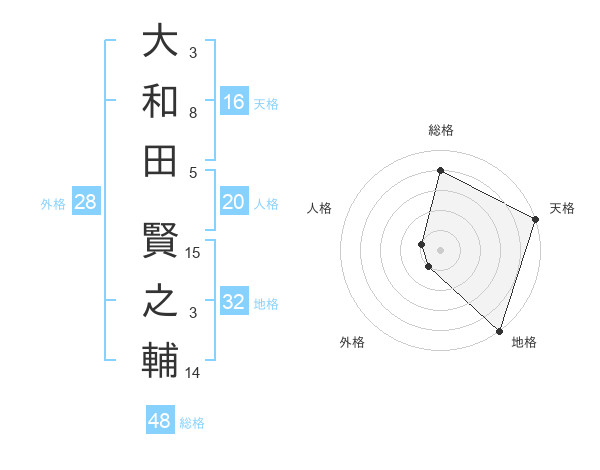 大和田 賢之輔さんを姓名の画数から五運を鑑定