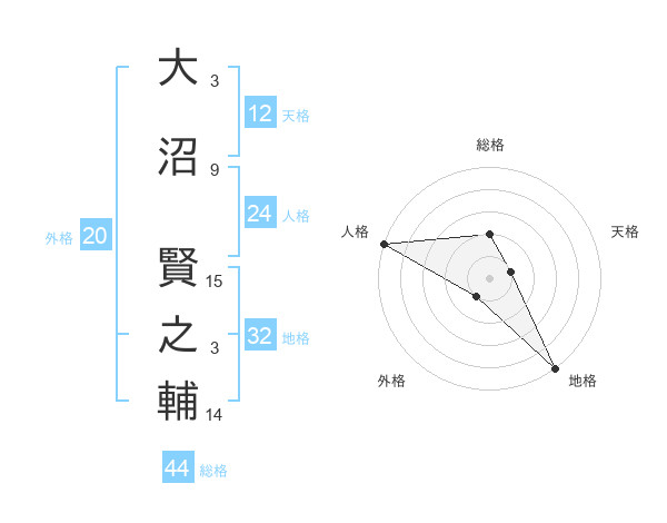 大沼 賢之輔さんを姓名の画数から五運を鑑定
