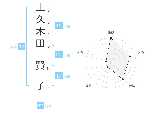 上久木田 賢了さんの総格は32画の5点!