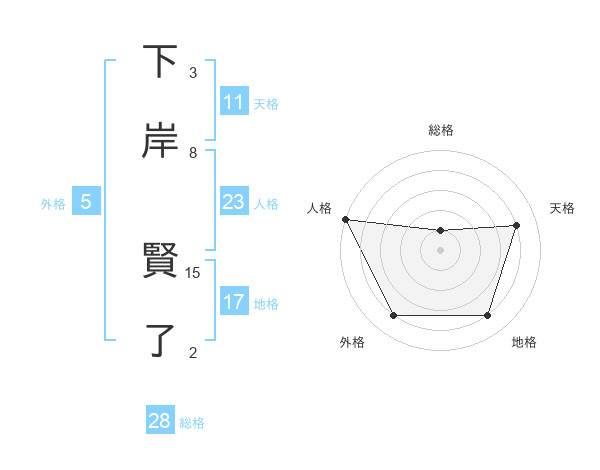 下岸 賢了さんの人格は23画の5点!