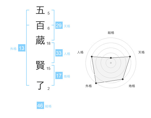 五百蔵 賢了さんの外格は13画の5点!