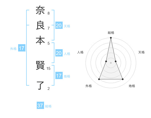 奈良本 賢了さんの総格は37画の5点!