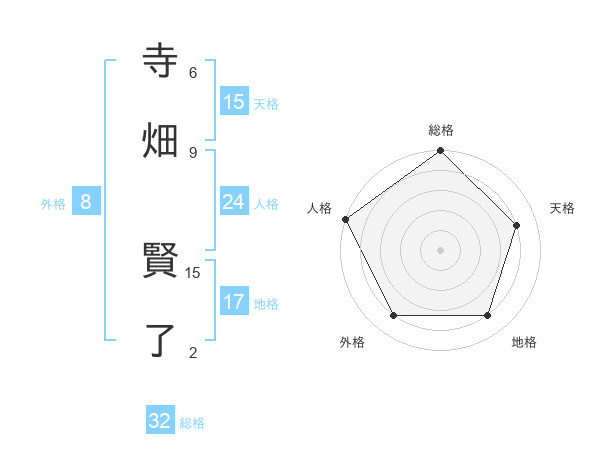 寺畑 賢了さんの天格は15画の4点!