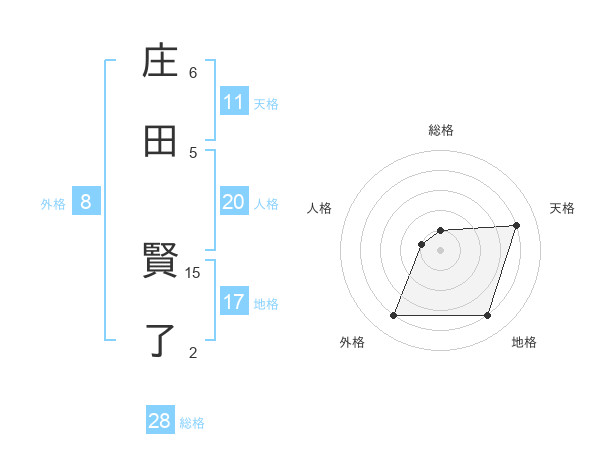 庄田 賢了さんの天格は11画の4点!