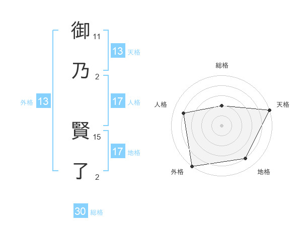 御乃 賢了さんの外格は13画の5点!