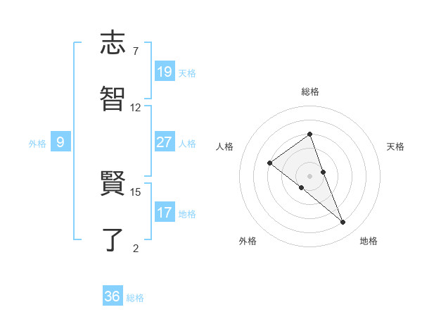志智 賢了さんの天格は19画の1点!