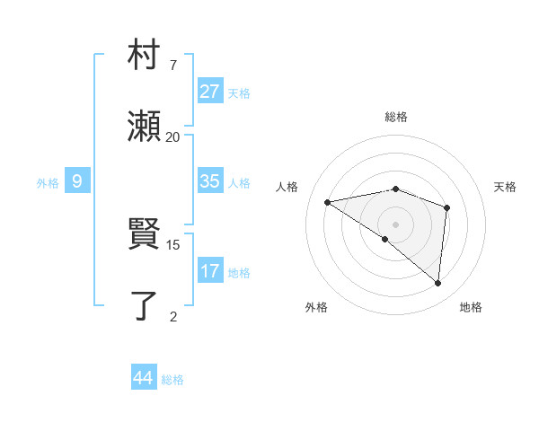 村瀬 賢了さんの総格は44画の2点!